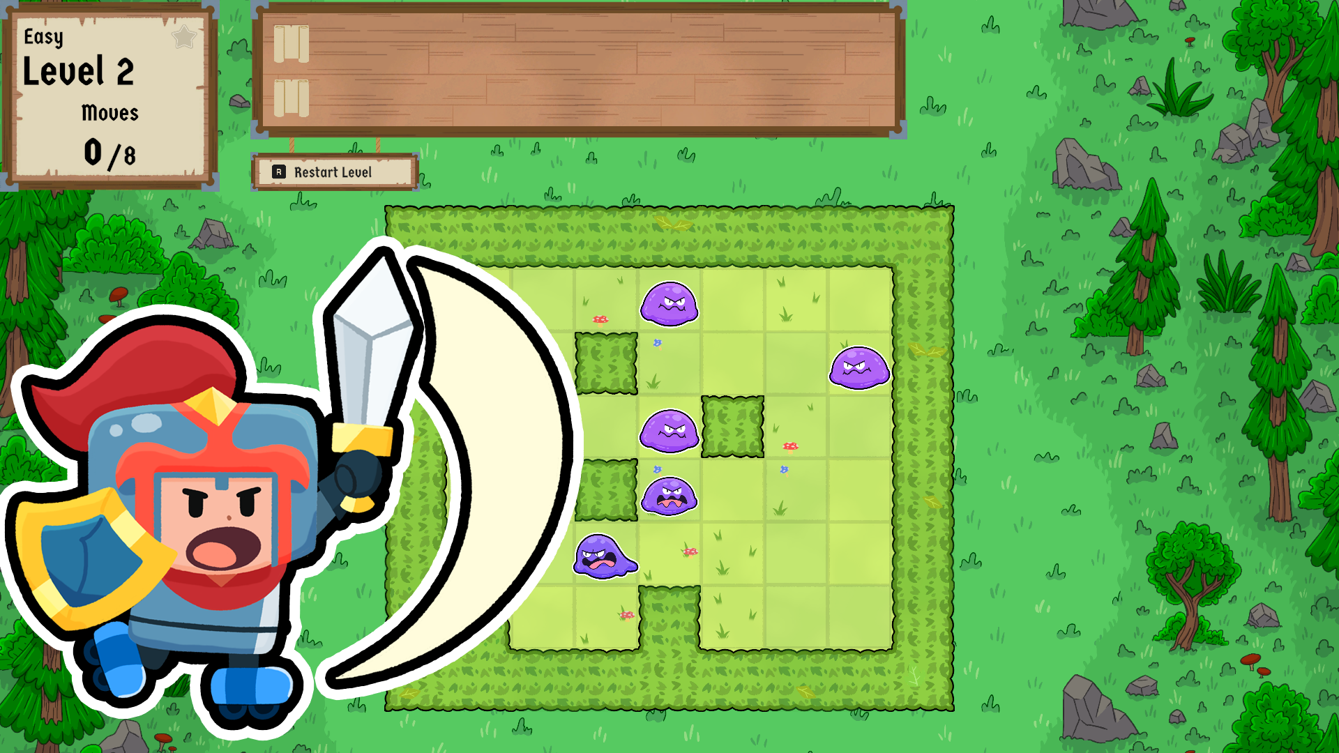 It’s a new twist on sliding block puzzles! It’s not about reaching the goal, just hitting the targets.